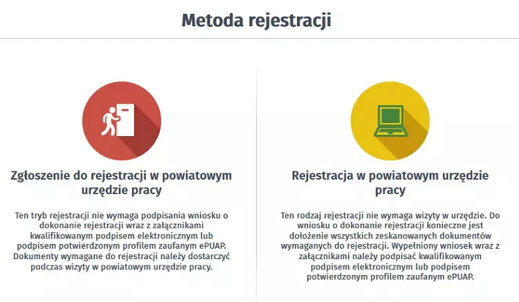 6. Następnie będziesz poproszony o wybór formy rejestracji. Wybierz „Rejestracja w Powiatowym Urzędzie Pracy”.