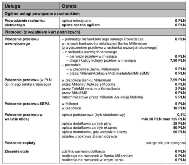 pozostałe za darmo, jeśli wykona się 1 transakcję kartą w mc, inaczej 1 zł lub 5 zł